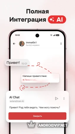 - Интеграция с ИИ (ChatGPT, Gemini) прямо в мессенджере.