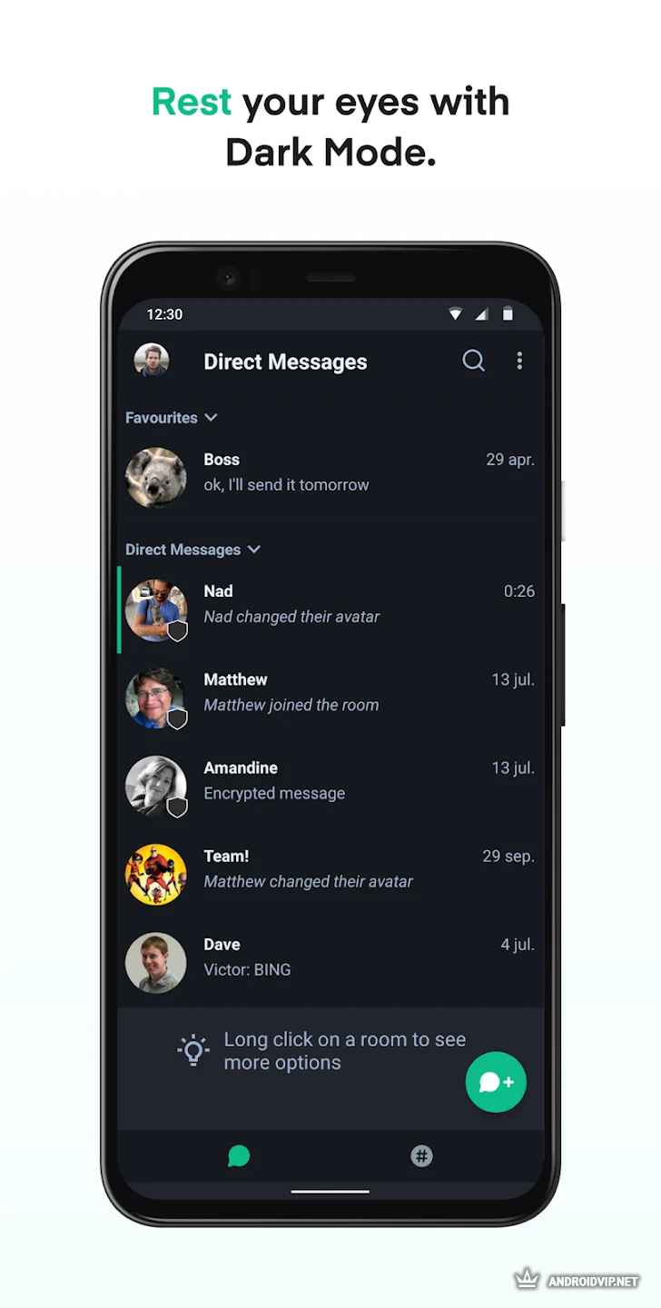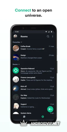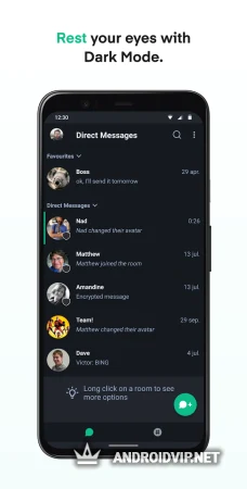 Дизайн у Element минималистичный и чистый. Никаких навязчивых анимаций и лишних кнопок — только чаты, контакты и настройки. Есть светлая и тёмная тема. Всё работает быстро даже на слабых устройствах.