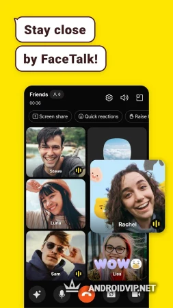 Голосовые и видеозвонки: индивидуальные и групповые. Можно менять голос с помощью фильтров (говорящий Том, Бен). Есть многозадачный режим — во время разговора можно делать другие дела.