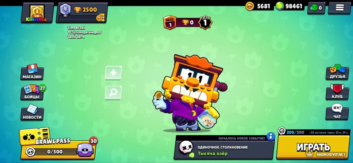 Time Brawl - это альтернативный клиент, который ставит во главу угла ускоренный прогресс и приятный визуал. Вместо долгого фарма — подарки, вместо скучного интерфейса — обновлённые экраны. В остальном это классический Brawl Stars образца 20-й версии, но с добавлением новых бойцов (Базз, Грифф) и механик из более поздних обновлений.
