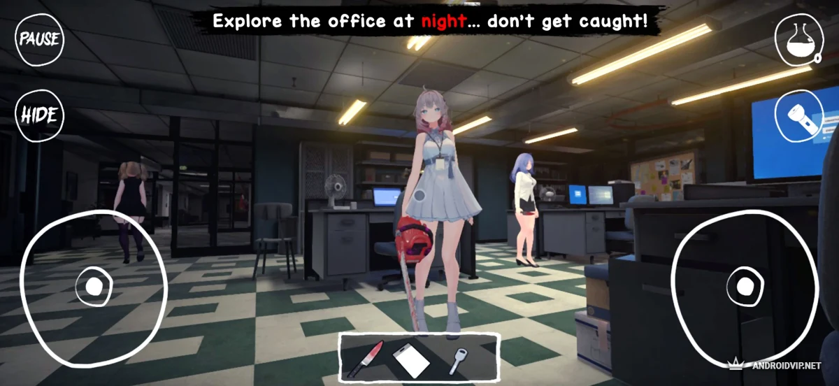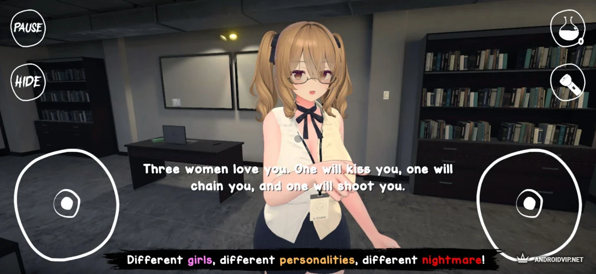 Yandere Horror Game - это психологический хоррор в аниме-стиле, где вы работаете допоздна в офисе, а ваша милая ассистентка Мира оказывается одержимой маньячкой. С трупа школьной подруги в ванной начинается кошмар: вас преследуют, запирают и, кажется, хотят убить из чувства любви. Выживание, побег из комнаты, несколько убийц-яндере и куча концовок — от романтических до кровавых.