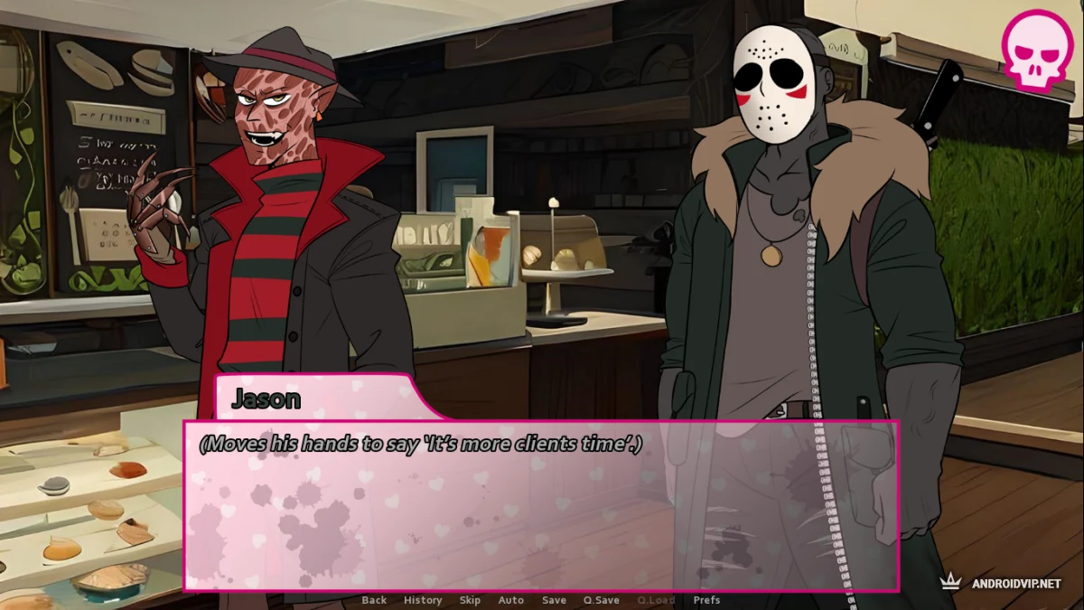 Horror Romance - это симулятор свиданий для тех, кто всегда хотел прижать к сердцу Чувака в маске из фильма "Крик" или закрутить роман с Фредди Крюгером. Игра от Vital Bones studio предлагает вам начать новую жизнь после тюрьмы, открыть кофейню и закрутить роман с одним из пяти культовых маньяков. Потому что нет ничего круче опасности.