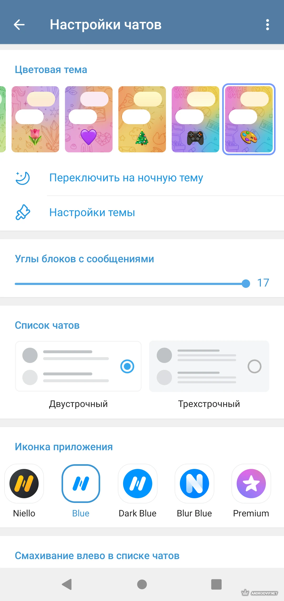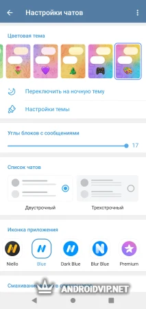 - Продвинутые темы Material Design и иконки в стиле Telegram X