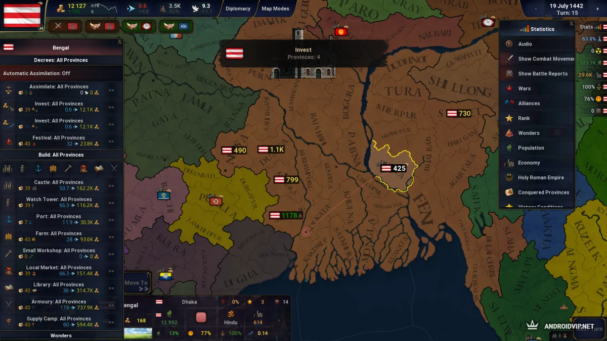 Массовые действия: Теперь можно одним кликом инвестировать, строить или ассимилировать все провинции.