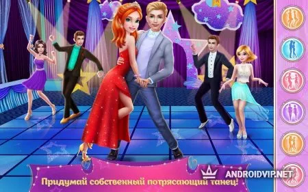 Королева бала: Танцы и любовь – это подростковая игра для девочек, которая рассказывает о событиях, происходящих в жизни главной героини. Представь, что один из самых симпатичных парней в школе пригласил тебя вместе с ним пойти на ваш выпускной вечер. Ты наверняка будешь вне себя от радости, и с нетерпением будешь ждать этого дня. Нужно столько всего подготовить, и платье, и макияж, и прическу, да просто целая гора дел. Кто знает, быть может именно тебя и твоего очаровательного спутника сделают Королем и Королевой выпускного бала?