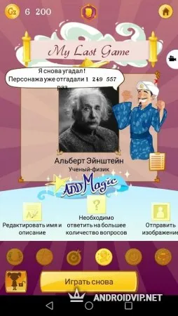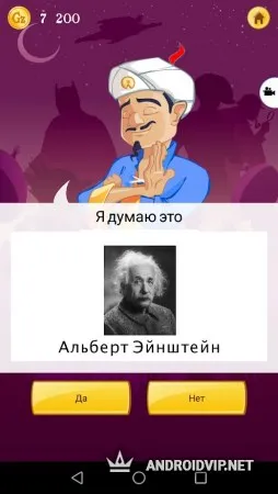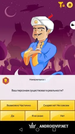 Стоит заметить, что у джинна много вопросов, например, какой у загаданного героя рост, носит ли он очки, определённую одежду и многое другое. Так что не удивляйтесь, если процесс отгадывания начнет затягиваться. Когда же джинн отгадает или не отгадает задуманного персонажа, вам начислят игровую валюту, которую вы можете потратить на изменение внешнего вида джинна или обновить его базу данных. Все это сопровождается приятным визуальным оформлением.