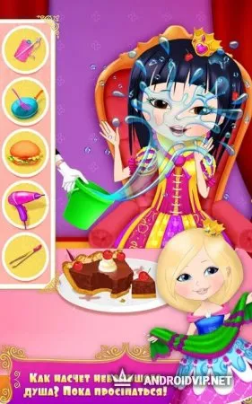 Не забывайте, что главная героиня – принцесса, и за ней следует тщательно ухаживать, подбирая шикарные наряды, выгуливать королевских питомцев и пользоваться волшебными заклинаниями. Самое главное – это добраться до короля и королевы. Но попутно придется разбудить и королевскую свиту, и слуг и всех остальных обитателей замка. И желательно сделать это до того, когда уже станет поздно. А все из-за злой ведьмы, но и с ней вы вскоре разберетесь.
