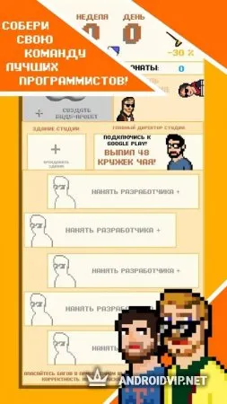 Геймплей очень прост: копите деньги, работая на разных должностях, чтобы заработать на нужную технику для разработки и в последствии стать успешным создателем игр. Восьми битная графика старой школы наверняка понравится бывалым геймерам.