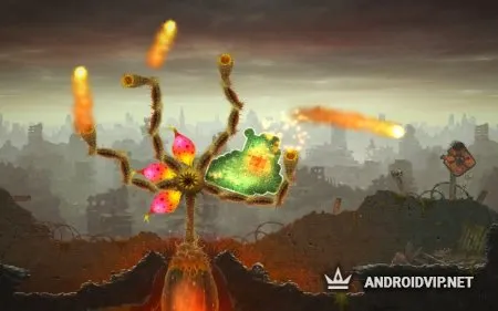 А вот конец каждого уровня – это своеобразное испытание. К примеру, первая локация заканчивается тем, что слизь должна поглотить огромный цветок, который выпускает в вас огненные снаряды из своих бутонов, а сам питается лавой.