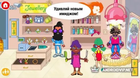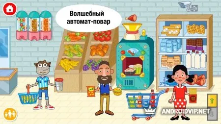 После запуска игры вы оказываетесь в многоэтажном здании, где есть большое количество магазинов. В какие бы отделы вы не зашли, всегда увидите много товаров на любую тематику. С помощью данного приложения ребенок легко сможет расширить свой кругозор.