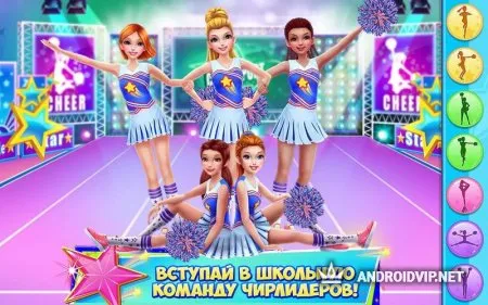 В команде чирлидеров – главная героиня этой игры перевелась в новую школу, и тут же решает записаться в команду чирлидерш. Но так просто популярность не завоевать, необходимо проявить себя и показать собственные таланты. Вы не стесняетесь общения и любите танцевать? Тогда вы идеально подходите! Кто знает, быть может вы даже станете капитаном команды. Но ваша первостепенная цель – это занять первое место в одном из самых крупных соревнований по чирлидингу.