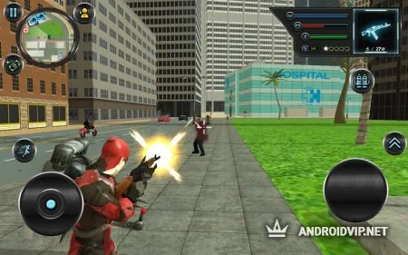 Тебя ждет богатый боевой арсенал, пистолеты, автоматы и даже базуки! Катайся на мотоцикле, машине или танке! При желании можно даже покорить водную гладь, используя водный мотоцикл. Выполняй задания повышенной сложности, чтобы выиграть особые предметы и применить их.