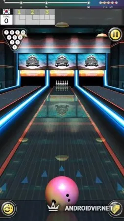 Конечно же, главная цель игрока в боулинг – это сбить все кегли за один удар. Но для первого страйка придется долго и упорно тренироваться. Стоит заметить, что всю дорожку поделили на определенное количество линий. Если у вас не получается сбить все кегли и остается один или два элемента с какого-либо края, то эти линии помогут вам исправить свой бросок. На дисплее можно увидеть специальные шкалы. Одна из них отвечает за силу, а вторая за прокрутку броска. В любой ситуации, вы, словно профессионал, должны рассчитать все эти показатели и показать настоящий страйк.