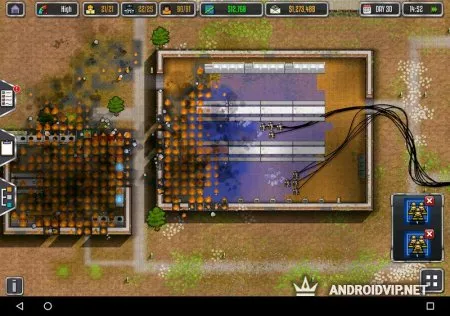 Prison Architect Mobile - интересная игра, в которой вам предстоит сконструировать самую надёжную тюрьму на планете. Продумайте каждую деталь здания, каждое помещение, входы и выходы, предусмотрите посты охраны, противопожарную систему и многое другое. Затем вам представится возможность уже управлять этой тюрьмой. Чем меньше у вас будет бунтов и побегов заключённых, тем выше уровень исправительного учреждения.