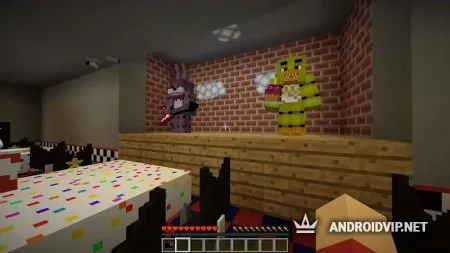 FREDDY FAZBEAR FOR MINECRAFT - это скин для Minecraft - Pocket Edition со всем известным персонажем из знаменитого хоррора Скота Коутона - медведем Фредди. Если вы фанат этих двух игровых блокбастеров, то данное дополнение будет настоящей находкой для вас. Вы начинаете игру в кафе, посреди глубокой ночи. Вдруг, вы понимаете, что вы здесь не один. Ваши соседи определённо не рады вашему визиту. Чтобы не быть убитым, необходимо постоянно двигаться, и, конечно же, использовать оружие, чтобы нападать и защищаться.