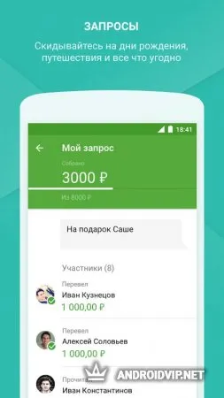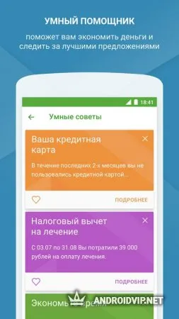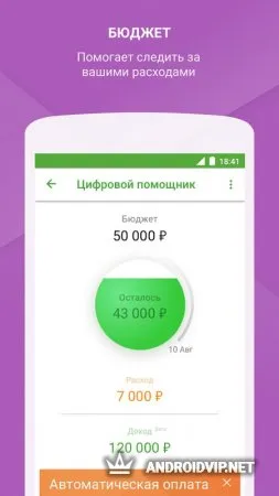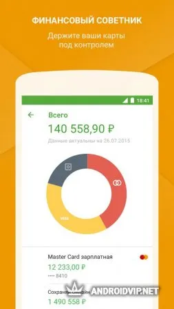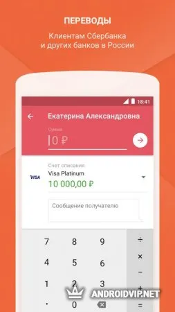 Переводите суммы с карты на карту двумя способами: по номеру счёта или же по номеру телефона из вашей адресной книги. Осуществляйте удобные платежи ЖКУ,мобильной связи, интернета, налогов и штрафов ГИБДД. Также предусмотрена функция оплаты по QR-коду: включите камеру, наведите её на QR-значок с квитанции по оплате, а всё остальное за вас сделает программа. Обновлённая версия содержит антивирус, так что теперь вы можете быть уверены, ваши деньги под защитой.