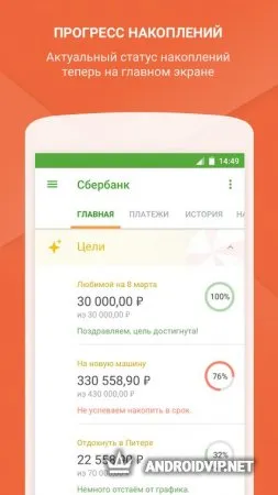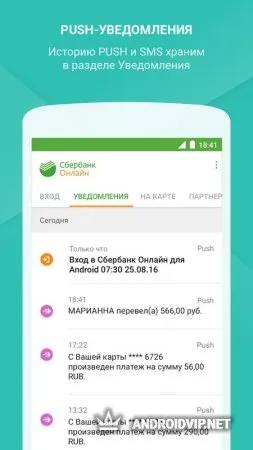 Приложение позволяет экономить большое количество времени, ведь больше не нужно ходить в отделы Сбербанка, чтобы сделать перевод, заплатить налог или провести какую-либо другую операцию, достаточно запустить приложение и мгновенно осуществлять платежи в любое время, в любом месте. Сбербанк Онлайн имеет простой, лаконичный внешний вид, удобную навигацию по разделам и приятное для глаз цветовое решение.