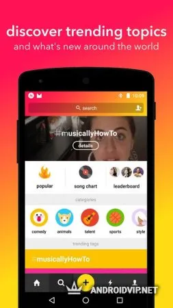 Musical.ly – это своеобразная площадка для любителей музыки и видео, где каждый может поделиться своими видеоклипами, и посмотреть предложения других пользователей. В интерфейсе программы находятся всевозможные музыкальные разделы. Так что понадобится определенное количество времени, прежде чем получится основательно разобраться во всех аспектах приложения.