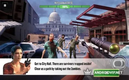 Обороняться придется с помощью снайперской винтовки - главным оружием на протяжении всего прохождения. С ее помощью вы сможете уничтожать зомби, не подпуская их близко к себе. Конечно же, если вы попадете в голову, то будет достаточно и одной пули, а вот выстрелы в туловища требует повторения.