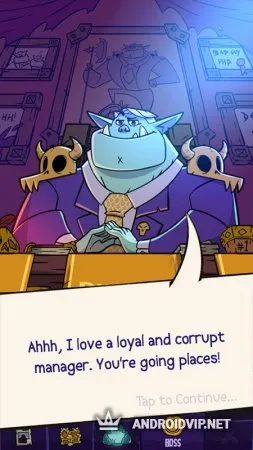 Dungeon, Inc. – это смесь стратегии и кликера от небезызвестной игровой студии PIKPOK. Вам предстоит устроиться на работу к одному монстру, который уже набрал необычною команду работников. На протяжении всего игрового процесса, главный герой организует бизнес, но в итоге все равно прогорает, желая заработать как можно денег. Довольно-таки забавно наблюдать, как многочисленные отделы в фирме постоянно развивались и шли вверх, а потом резко сгорели дотла, чтобы главный герой смог заполучить долгожданную страховку.