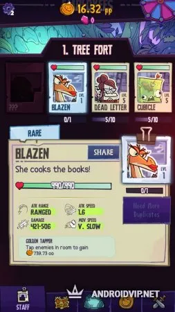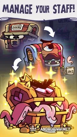 Под налетчиками подразумеваются всевозможные рейдерские захватчики и налоговая инспекция. Тапайте по врагам и отнимайте их здоровье. Но при этом не стоит забывать, что чем ниже они спускаются, тем быстрее выводят всех подопечных из вашего строя. Зато с уничтожением налетчиков, главному герою начисляется весомое вознаграждение. Это может быть золото, кристаллы или карточки, позволяющие заполучить новых работников. Когда игроку удается собрать особу команду, он может вместе с ними отправиться на, так называемый, заработок. И так вам предстоит раскрутить свою компанию до максимальных возможностей.