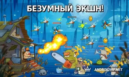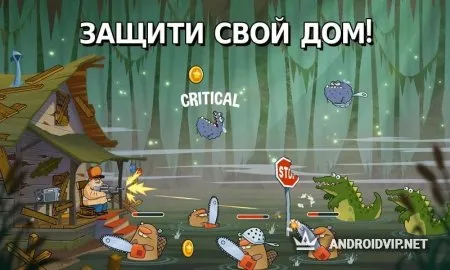 Это очень интересная мобильная аркада, в которой предстоит защищать свою хижину от нашествия взбесившихся лесных обитателей, используя любые доступные способы. Задействовать можно различные виды оружия, оборонительные сооружения. В процессе игры появляются утки и подарки с новым оружием, патронами, другими полезными «фишками». Оригинально реализована система меню с ползающими тараканами, разбегающимся в различные стороны от прикосновения по экрану.Уровни дополнены интересными режимами, пройдя которые можно заработать дополнительные монетки.