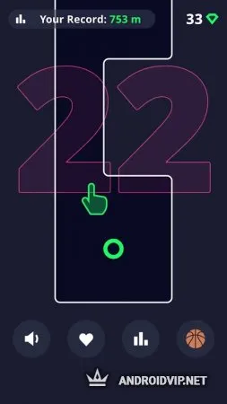 В игре не предусмотрено ни бонусов, ни предметов, которые бы позволили увеличить время одного «забега». Однако, чем дольше играешь в эту игру, тем проще становится пройти как можно больше расстояния. Игрок, скорее всего, «набивает» руку, получает опыт, потому что по-другому этого никак не объяснишь. Ведь препятствия постепенно не только меняются, но и увеличиваются по количеству. Управление очень доступное и простое: в какую сторону необходимо отправить ключевой элемент, туда и делаем свайп.