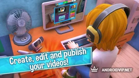 В первую очередь необходимо заняться созданием своего персонажа. Благодаря обширным настройкам, вы сможете настроить все до мельчайших деталей. А игровой процесс берет свое начало со следующих событий: главный герой – обычный подросток, который живет вместе со своими родителями. И вот однажды он заинтересовался таким направлением, как создание разнообразных видеороликов. Но, как парень уже понял, нужно записывать именно такое видео, которое точно бы привлекло внимание аудитории. Тем самым, они будут подписываться на ваш канал, оставлять комментарии и делиться вашими видео со своими друзьями.