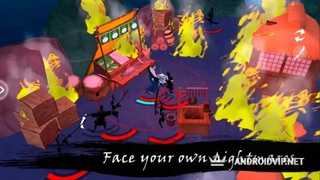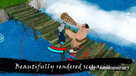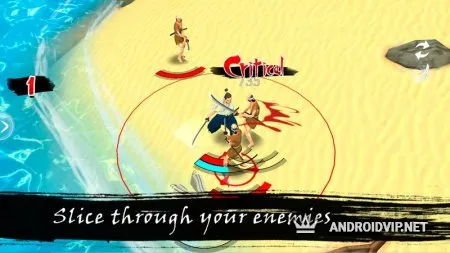Неплохая завязка, но еще более удивительная боевая система, которая не совсем соответствует данному жанру. Можете не искать никаких кнопок для осуществления бега, так как любое передвижение будет проводиться путем тапа в нужной части экрана. Свайпы представляют собой атаку. Проект отличается интересной задумкой, разнообразными возможностями и атмосферой духа истинного самурая.