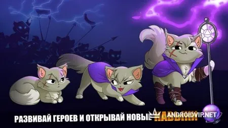 Вы можете самостоятельно создавать новых воинов для своей гильдии, если воспользуетесь навыками алхимии. Прокачивайте их навыки и способности, но для этого придется потратить некоторые ресурсы, включая и игровую валюту. Не забывайте, что не все коты отличаются добротой, некоторые из них могут летать, а другие в любую минуту способны разозлиться. Выполняйте ежедневные задания и ведите свою команду к основной цели – свергнуть Некромопса.