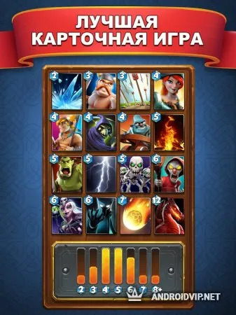 Тактика победителяСделайте все возможное, чтобы ваша армия пришла к бесспорной победе! Чтобы добиться успеха, вам необходимо собрать колоду сильнейших войск, и тогда можно отправляться в бой, на захват вражеского замка. Чем больше кубков у вас получится заработать, тем выше станет ваш рейтинг в мировой таблице. Нужны уникальные бойцы и разрушительные заклинания? Открывайте специальные сундуки, чтобы заполучить и то, и другое. Кто знает, быть может, именно вы сможете получить одну из легендарных карт.