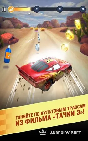 Тачки: Лига Молнии Маккуина / Cars: Lighting League – это гонки от всемирно известной студии Disney, которые определенно придутся по вкусу, особенно поклонникам мультфильма с тем же названием. Проект имеет приятную графику и весёлое музыкальное сопровождение. Кроме того, в игре присутствует закадровый голос, который постоянно будет подбадривать игрока во время гонки.