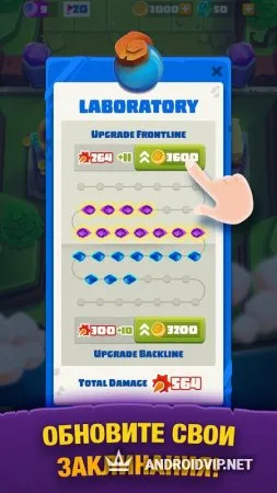Чтобы не уступать монстрам, которые по количеству во многом превосходят ваши силы, прокачивайте собственную боевую мощь в специальной лаборатории. Укрепите основную стену, добавив ей несколько единиц прочности. Во время битвы иногда может выпасть особый сундук. Но даже у него есть ограниченное количество здоровья. Ключ от него можно получить только после сражения, когда сможете уничтожить всех чудовищ и победить главного босса. Передвигайте по уровням и открывайте для своего героя новые умения.