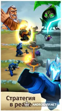 Spellbinders на Андроид - новая MOBA-стратегия от разработчиков, которые подарили нам такой хит, как Subway Surfers. Сюжет повествует нам о сражениях за признание и славу мифических титанов, стать одним из которых нам выпала честь. Поле на карте поделено на три участка. Друг напротив друга расположены три дома, связанные дорожками между собой, а в центре - три большие пушки. Необходимо быстрее конкурента разрушить дома. Используйте грамотную тактику и ваших юнитов, чтобы победить. Схватки сосем не надоедают. Битва длится на протяжении трех минут, но за это время на ваших нервах успеют поиграть. Очень увлекательная игрушка понравится как фанатам tower defense игр так и всем ценителям качественных проектов.