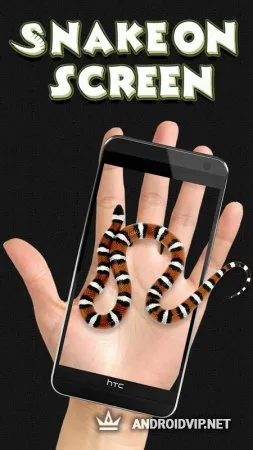 Змея на экране Joke представляет из себя шуточное приложение, с помощью которого можно весело разыграть своих друзей. При запуске на экране вашего смартфона появится живая, шипящая змея, причём время её появления можно настроить, так что ваш друг точно не будет готов к этому! Детализация змеи очень реалистичная. Кстати, змейкой можно завлечь вашего домашнего питомца - кошку или собаку, ведь они явно не против поохотиться за такой животинкой, другое дело, сколько царапин в последствии они оставят на вашем телефоне? :)