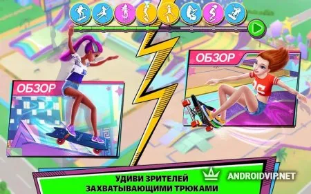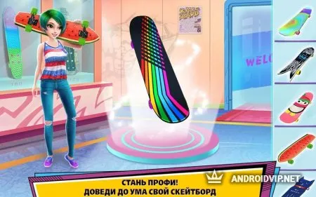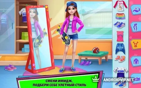 Подбери себе классный прикид в магазине и выбери доску. Придумай яркий, запоминающийся макияж, ведь нужно не только отлично кататься, но ещё и смотреться привлекательно. До турнира осталось совсем ничего, ты можешь сделать легкую тренировку в закрытом скейт-парке. Обязательно посети доктора, чтобы он осмотрел тебя, вдруг, ты приболела? Нет? Отлично! Расслабься в спа-салоне и готовься к выступлению, у тебя всё получится! Удачи!