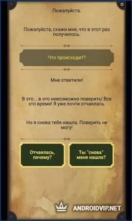 Как только Арике потребуется помощь, игрок получает текстовое сообщение в диалоговом окне ввода. Чтобы задать дальнейший вектор рассказа, достаточно выбрать один из предложенных вариантов ответа. Принимать решения после получения послания необязательно незамедлительно. Достаточно выбрать ответ тогда, когда появиться свободная минутка.