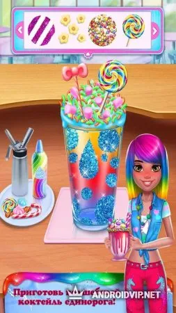 Пища единорогов Еда и наряды - окунись в яркий мир единорогов! Девочка Эшки очень любит этих сказочных животных и всё, что с ними связано. Давай поможем ей создай мир своей мечты! Приготавливай отличные блюда, напитки, примеряй классные радужные наряды с тематикой единорогов, и даже причёски и маникюр! Играй в мини-игры, загружай свои работы в социальные сети на оценку и получай десятки, сотни лайков! Вы вместе ней и её друзьями создадите волшебный единорожий мир!