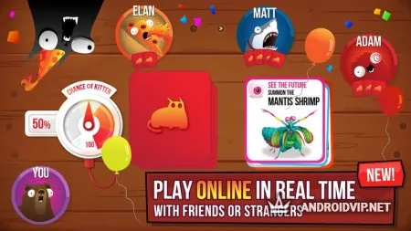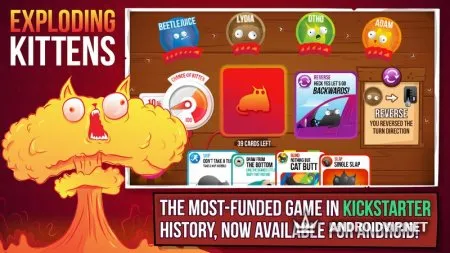 Exploding Kittens на Андроид – веселая и простая карточная игра для мобильных устройств о взрывающихся котиках. Игровой проект, получивший безумный успех у пользователей, является прототипом настольной игры. Механика и правила «Взрывающихся котят» во многом схожи с русской рулеткой. Благодаря режиму мультиплеера одновременно могут играть до пяти человек, находящихся в одной комнате. Игра подходит для отличного времяпровождения в компании друзей и по накалу страстей не уступает популярным настольным играм.