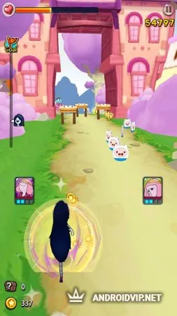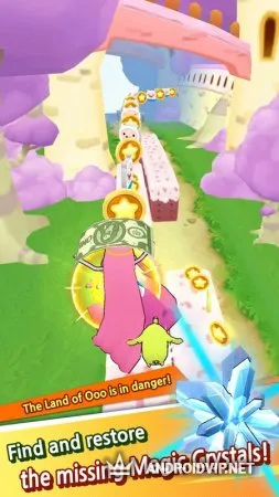 Adventure Time Run - это новый раннер с героями известного мультипликационного сериала: Финном, Джейком, Бабблгамом и многими другими. Вместе с ними вы будете бегать по Конфетному Королевству с крутыми поворотами, спусками, подъёмами, преодолевать различные препятствия. Собирайте различные ценные находки для персонажей и разыщите магические кристаллы. Остерегайтесь Ледяного Короля и главное - не падайте в воду!