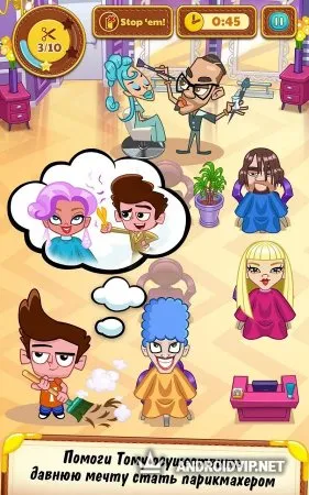 Мошенник Том 4 - Он так хотел стать стилистом - это новая игра про нашего старого знакомого, проказника Тома, который недавно закончил школу, и теперь он будет работать. Нет, не врачом, не строителем и не поваром, а стилистом! Только одно условие, работодатель строго-настрого запретил Тому касаться волос клиентов. Он может только подбирать их с пола. Другими словами, парень работает уборщиком в салоне, а также изредка отвечает на звонки клиентов. Как вы уже поняли, такой расклад его явно не устраивает. Вы должны помочу непутевому парнишке стать самым крутым стилистом в городе!