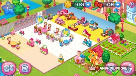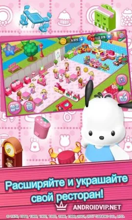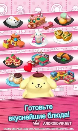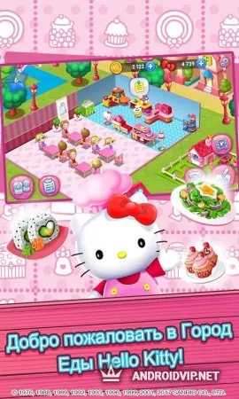 Hello Kitty Город еды - в этой милой игре вы будете ухаживать за своим ресторанчиком и помогать вам в этом будут Китти и её друзья. Создавайте необычные и очень вкусные блюда на радость посетителям. А чтобы их было больше, украшайте своё место красивой мебелью и другими предметами интерьера. Но самое главное - это, конечно же, еда. Чтобы она была максимально вкусной нужно не покупать готовые продукты, а выращивать свои. Для этого заведите небольшую ферму, где у вас будут расти только самые отборные фрукты, овощи и мясо. На деньги от прибыли можно всячески улучшать ресторан: покупать новую технику для кухни, обновлять столики со стульями и увеличивать их количество, чтобы довольных клиентов было больше.