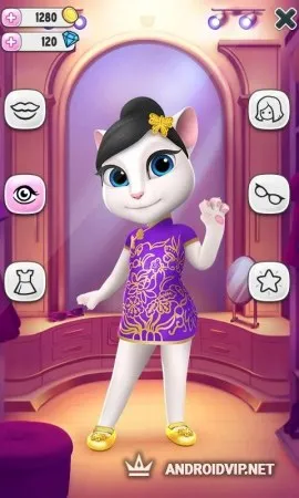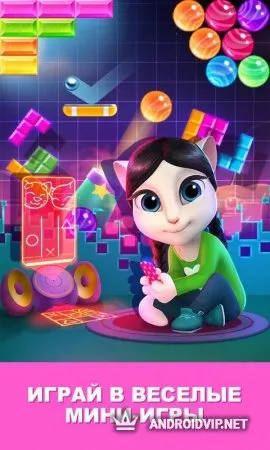 Анджела не только умеет разговаривать и повторять слова, но и способна выражать свои эмоции на каждое действие игрока – радость, грусть, разочарование, обиду. Прислушивайтесь к мнению своей любимицы, меняйте внешний вид кошечки, делайте жизнь пушистой красавицы разнообразной, ходите в гости к друзьям, устраивайте совместные вечеринки и игры.