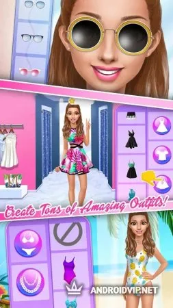 Подбери красивый макияж, шикарную и элегантный наряд. В этом тебе поможет лучшая подруга нашей героини - Джессика. Помимо этого вы сможете отлично повеселиться на пляжной вечеринке и завести новых друзей. Выберите классный купальник и примите солнечные ванны. Экспериментируй с образом Ханны и получай ценные монетки и алмазы ежедневно, с их помощью можно приобрести различные игровые предметы.