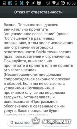 Как работать с программой Байду Рут: после запуска приложения необходимо принять лиц. соглашение, затем тыкаем на синюю кнопку вверху дисплея и всё, после непродолжительной паузы появится сообщение о том, что вы получили Root-права.