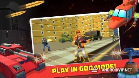 Mission Bravo: GOD MODE - это отвязный экшен, где вы будете играть за героя-одиночку, и подобно Рэмбо или Джону Мэйтриксу будете убивать плохих парней десятками. В этом вам поможет тяжёлое и мощное оружие, а также реактивный ранец, чтобы перемещаться по воздуху. В игре у вас есть возможность управлять наземной и воздушной военной техникой. Прокачивайте своего героя и получайте различные бонусы.