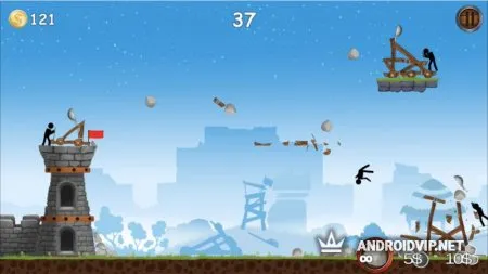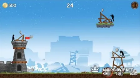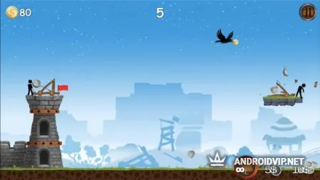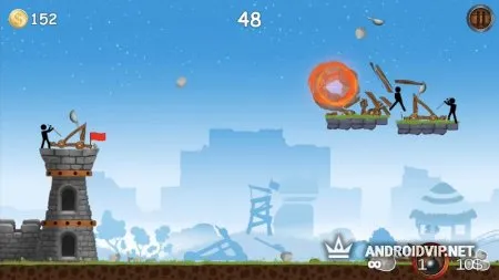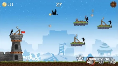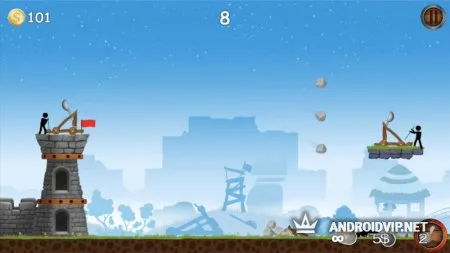 Если вы ярый фанат игр про стикманов, то новинка под названием The Catapult вам должна понравиться. Суть игры такова: защищайте свой замок от катапульт соперника. Используйте собственное осадное орудие, чтобы уничтожить боевые единицы врага. Как управлять: тапните по экрану и потяните, чтобы зарядить катапульту и определить силу натяжки. Отпустите и камень полетит в цель. Чем больше вы повергните соперников, тем больше монеток получите, а на них можно приобрести различные улучшения и снаряды, к примеру бомбу.