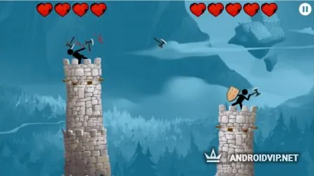 Викинги - это экшен в стиле стикманов, где вы станете отважным нордическим воином и будете уничтожать врагов при помощи своего смертоносного топора! Чтобы запустить топор нажмите на экран и потяните для прицеливания, затем отпустите, чтобы метнуть топор. Один такой бросок запросто убьёт вашего врага. Но их будет немало! Мечники в доспехах, лучники и даже колдуны будут противостоять вам. Но и вы тоже не лыком шиты - в игровом магазине есть большой выбор разнообразных топоров, а также мощных доспехов, шлемов и щитов, с помощью которых можно защититься от стрел и магической атаки колдунов. Играйте с компьютером или в режиме PvP: вы находитесь друг напротив друга в своих башнях, игра длится до тех пор, пока кто-то из вас первым не проколет черепушку соперника топором.