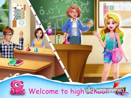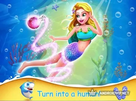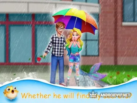 Но сначала нужно слиться с человеческим обществом. Помоги нашей героине стать ученицей старшей школы, создай для неё красивый макияж и подбери одежду. Собери нужные вещи и отправляйся на уроки! Новичку в школе всегда тяжело, поэтому поспешите найти друзей. Мальчик по имени Алан похоже влюблён в Мию и приглашает её на обед! Она просто счастливица, ведь он - самый видный парень школы, готова ли она к отношениям? О Боже, на улице дождь! Не допустите превращения Мии обратно в русалочку, об этой тайне не должен знать никто.