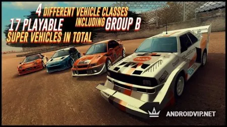 Rally Racer EVO - это качественные раллийные гонки на Android. Пройдите испытания, получите лицензию профессинального водителя и участвуйте в многочисленных заездах с конкурентными соперниками. Вашему вниманию представлено 17 реалистичных автомобилей, включая такие известные модели, как Subaru Impreza, Audi Quattro S1, Mitsubishi Lancer EVO и другие. Создайте свой неповторимый стиль, используя возможности кастомизации машины. Неплохая графика, реалистичная физика и при всём при этом игра весит 62 мегабайта.